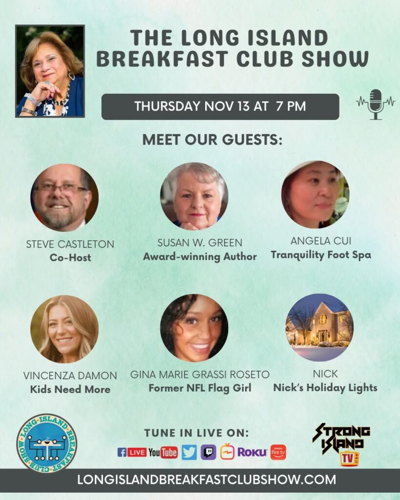 The Long Island Breakfast Club Show – 2025 Episode 35. Hosted by Tina Valentina. Tonight’s guests are… Susan W. Green, Award-winning Author Books By Susan W.