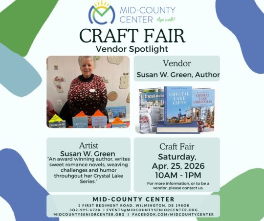 Join me for a fun, community-centered day filled with over 20 local vendors, handmade goods, and more — and be sure to stop by my table while you’re there! I’ll have copies of my books available and would love to meet you. Mid-County Center helps people age well! As part of their fundraising efforts come out on April 25th to support Mid-County’s no-membership fee senior center.
